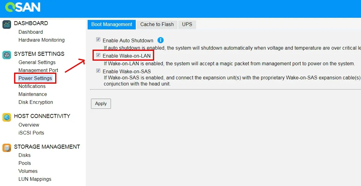 The wake on LAN(WOL) can enable through SYSTEM SETTINGS -> Power Settings -> Boot Management tab. Then click “Enable Wake-on-LAN”. You can also refer the below photo to find where can enable WOL..jpg)